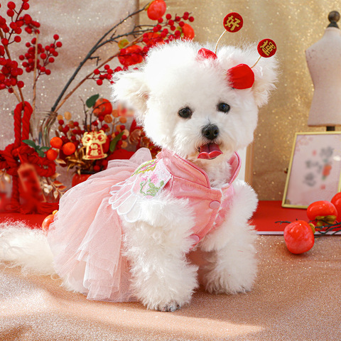 ONESTEP Manufacturer Wholesale Winter New Year Dress for Dogs & Cats Popular Cotton Brocade Clothing with Animal Print Pattern