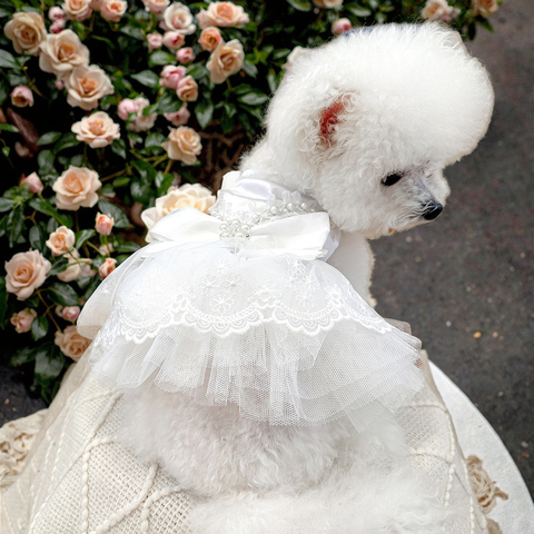 ONESTEP Manufacturer Cute Dog White Polyester Lace Wedding Dress Pearlescent Luxury Pet Clothes